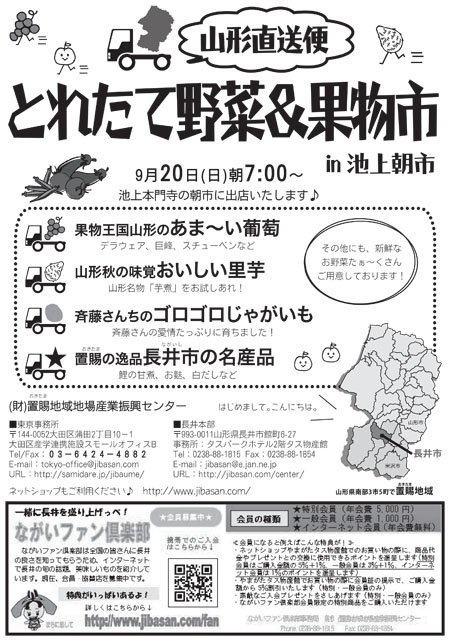 東京都大田区の池上本門寺の朝市がいよいよ明日に迫りました〜。山形からうんまい野菜と果物をどっさり持っていきますよ♪お近くの方は来てけろな〜。池上本門寺朝市 平成21年9月20日(日)午前7時から【この記事は、ながいファン倶楽部のブログです】☆毎月1日・15日にファン倶楽部会員様へメールマガジンを配信♪▼お申込はこちらから!