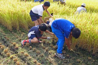 けられているそうです。今年は稲を植えて育てる「田んぼの学校」