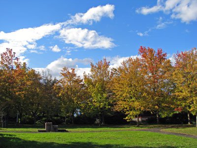 【白つつじ公園の木々も綺麗に紅葉しています】