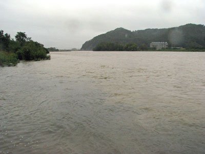 す。昨日から雨が降り続き、TASビル裏手を流れる最上川も濁流となっ