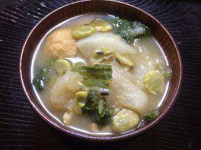 かぶ、うちまめ、油揚げが入ったお味噌汁なんです。