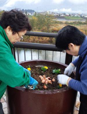 【長井橋花壇 冬用に衣装替え】