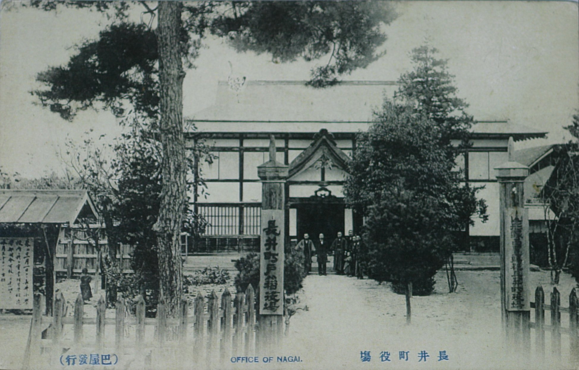 長井町長に猿橋政孝(喜多方出身)当選。これより前宮村と小出村が併合、長井郷の首都の意をもって「長井町」と命名。当時摂取院に仮役場を。新築を計画し明治26年に小出の念仏堂に一時仮役場を移す。27年4月に入札、小出本町1411番地(小野医師南)に明治27年9月に新築完成した。予算は1,600円、総建坪数は60坪。 役場の仕様:本庁舎 総二階 梁間四間 桁間七間半(但し一間は6尺3寸) 竣工式は10月14日午前10時。