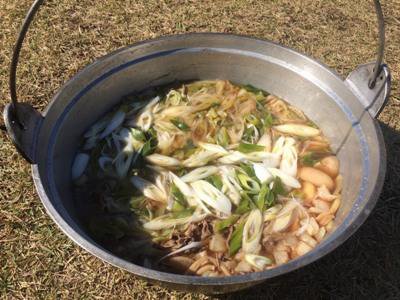 石を積んでかまどをつくり、みんなでワイワイ作っている姿も