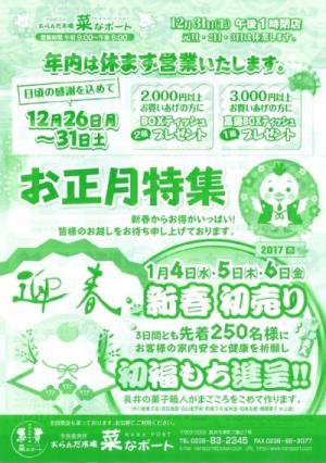 年内は休まず営業します!さあ、菜なポートへGO\(-o-)/