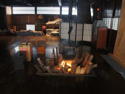 虫を駆除し建物を長持ちさせるために、囲炉裏に火を入れ