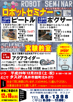 【ロボットセミナー&実験教室開催のお知らせ】