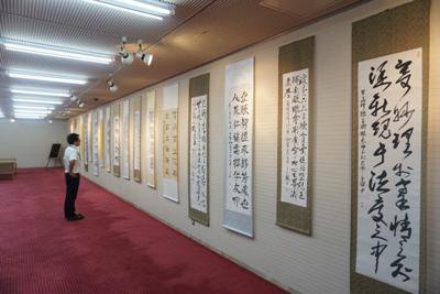 タスビル1階の展示ホールで、『中日友好郭恒書展』が行われています。