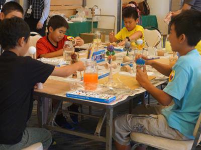 けん玉の絵付けに、たくさんのこどもたちが来てくれました。