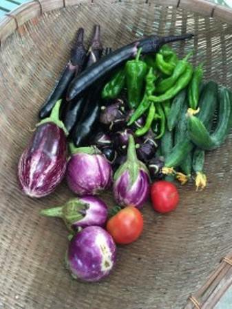 夏野菜収穫と薄皮丸茄子漬体験,郷土料理の昼食付 〜