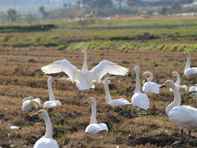 朝晩の気温がグッと下がり始め、飛来する白鳥の数も増えてきました。