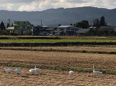 郊外の田んぼには落穂ひろいをする白鳥の姿をみかけるように