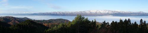 中・・・雲海に隠れて見えませんが、長井盆地