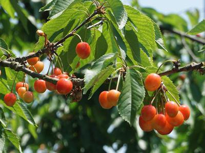 ▼まだ黄色いさくらんぼ。太陽の光をいっぱい浴びて