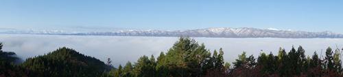 中・・・雲海に隠れて見えませんが、長井盆地