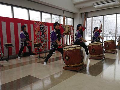 コロナ禍ではありますが、「道の駅 川のみなと長井」では地域のお客様へ向けて、例年通り『かわべリング元旦祭』を開催。▼恒例の「あやめ太鼓」。勢いで悪病退散となってくれるようスタッフ一同祈願しました。